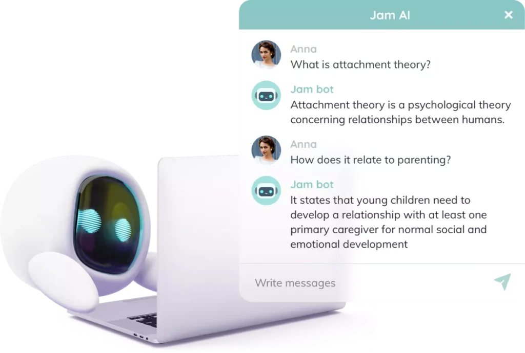 JamAI is an AI chatbot and tutor which is readily available within the Jamworks app for students to connect with 24/7 alongside their learning. JamAI can present information to dyslexic students in different ways to make the content more understandable and digestible than how the content has been taught during the class. JamAI can improve students’ understanding of lecture content which will lead to better grades as a result. JamAI works as a method of accommodations for dyslexia in education as the AI tutor can provide meaning to words, correct spellings, improved grammar suggestions and can construct paragraphs of text for students to add to their notes.