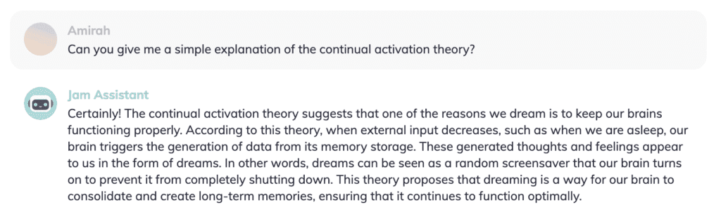 You can ask questions and have concepts explained multiple times in different ways. There’s no need to feel limited or embarrassed, which gives you the freedom to learn in a way that is best for you. JamAI can summarise, expand, simplify, and so much more to aid your comprehension.