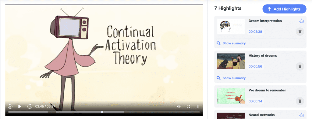Using AI, Jamworks generates short summaries for each highlight and a list of key points to support your comprehension. To each highlight, you can also add your own notes, images, and files.